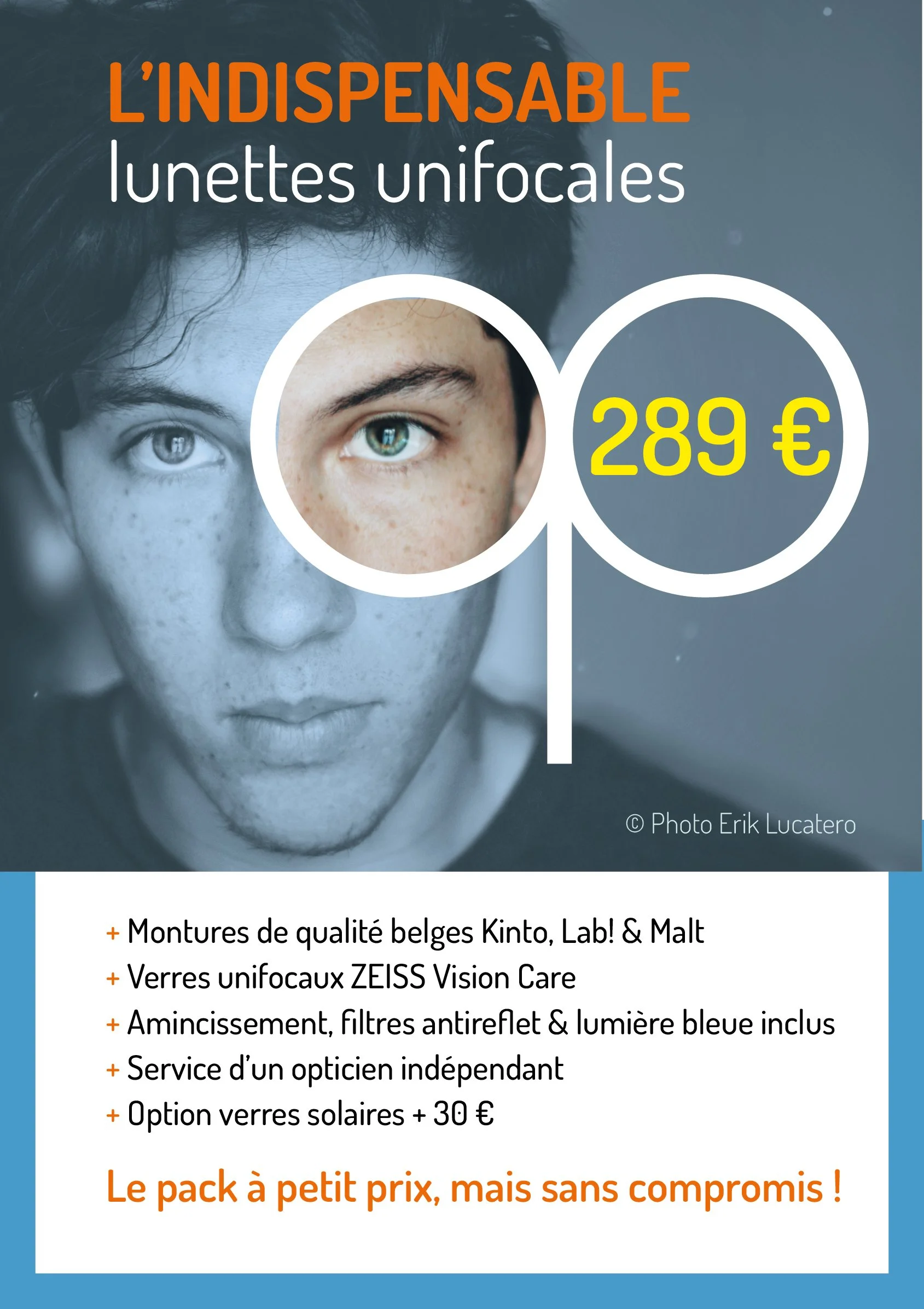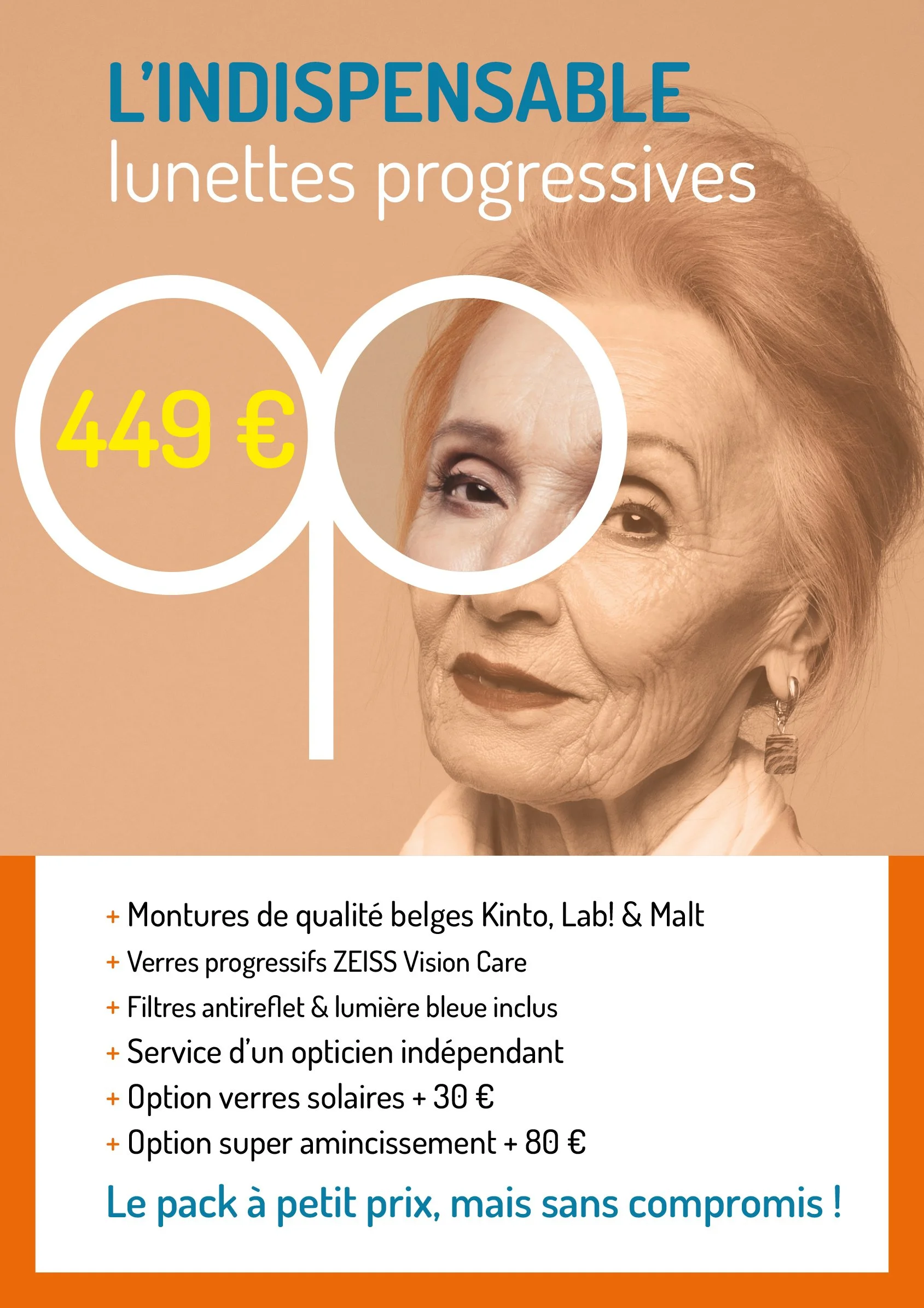 Nous avons sélectionné des montures qui répondent aux mêmes critères de qualité, de réparabilité et de durabilité que toutes nos lunettes. Simplement, ce sont des collections de stock d’il y a 1 ou 2 ans que nous avons pu négocier pour vous à prix très doux. Et pour les verres, nous vous avons également obtenu des conditions spéciales sur la qualité ZEISS Vision Care. Résultat : le seule chose qui est réduite, c’est le prix, pas la qualité. Indispensable, non ?